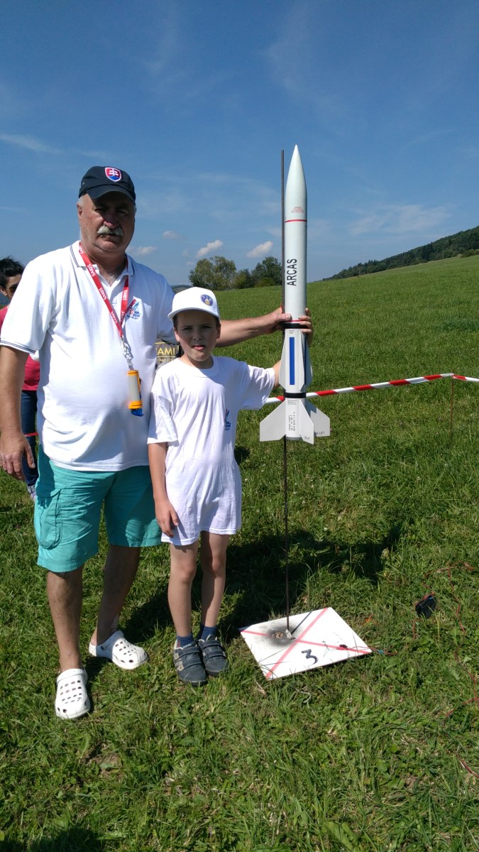 Místem konání akce byla lokalita Mníchovský potok u Bardejova. Akci sledovalo asi 35 dětí a rodičů plus aktéři. Létali většinou modely na 1xROS, ale i model na 3xROS a také AP AeroTech motor - zrno s C – slotem a poněkuď otravným zážehem. Tibor Gira dovezl celou flotilu modelů různých tvarů, velikostí a barevných schémat, dále létal Marek Klešč a Miki Szabo. Na odpalování používali bezdrátový odpal vysílač – přijímač. Hezké počasí a atraktivní lety raket se zapojením dětí do přípravy i odpalů vytvořili prostředí pro silný zážitek pro děti i ostatní diváky. Příprava další generace rakeťáků úspěšně probíhá. Do přílohy mám připraveno 10 foto a 1 video od Mareka Klešče, snad to půjde vše nahrát … Neodolal jsem a přidal i loňský krásný skupinový snímek. Na akci celkem překvapivě bouchli 3 ks ROS ze zásob Mareka Klešče. Zajímavá byla dynamika bouchnutí , když vnější plášť ROS prorazil základnu rampy, došlo i k nezvyklému podélnému natržení a roztažení pláště, který kuriózně vyhnul základnu rampy dohora místo nadol. Na linku níže je video startu a letu jednoho z modelů …. uloz.to/!syxbgoDEA/bardejov-08-2016-vid-20160820-1071-mp4 Gratuluji Tiborovi a ostatním k hezké a úspěšné akci pro děti. Mirek |