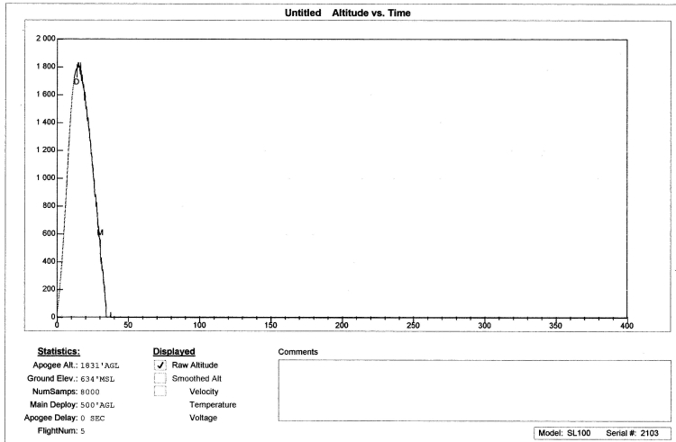 Tady jsou grafy letu Růžového pantera vytáhnuté z stratologera pomocí datového kabelu do PC a zpracované v programu Perfekt Flite Data Cap.Hodnoty výšky jsou v stopách je nutno je přepočítat výrobce neumožňuje hodnoty změnit na metry. Přitom snímání teploty a ukládání do paměti /je možno i zpracovat graficky/ je možno volit mezi Fahrhaintem a Celsiusem.