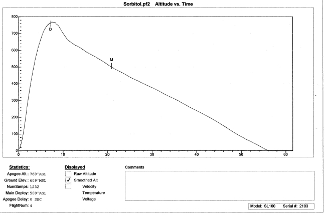 První graf je let na sorbitolový motor a druhý na hybridní pohon N2O. |
