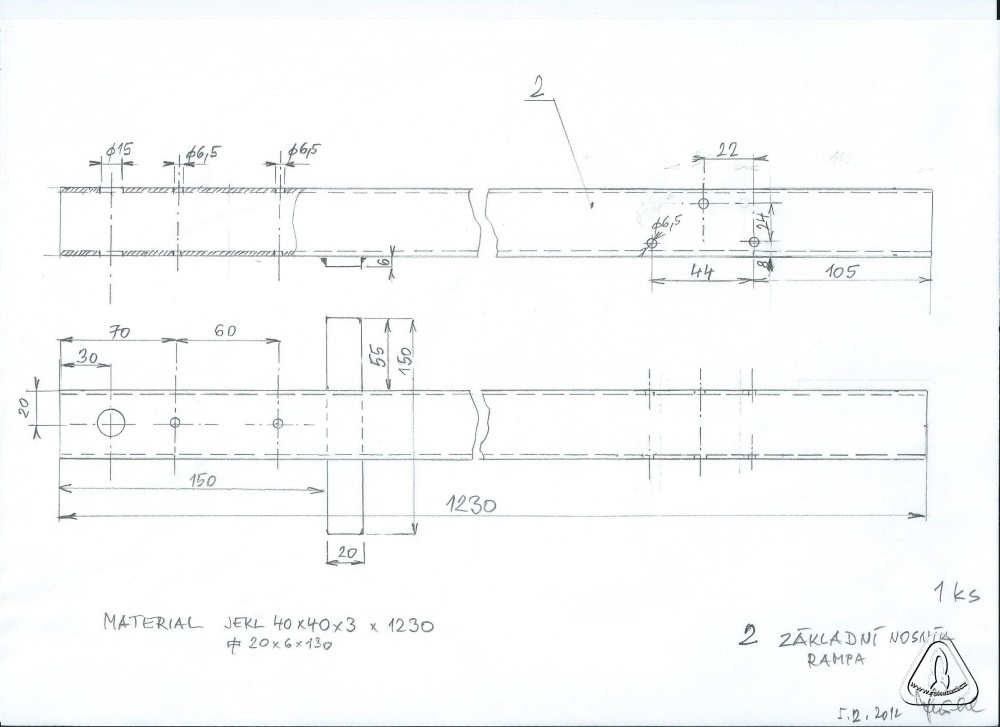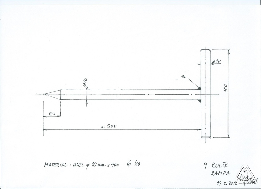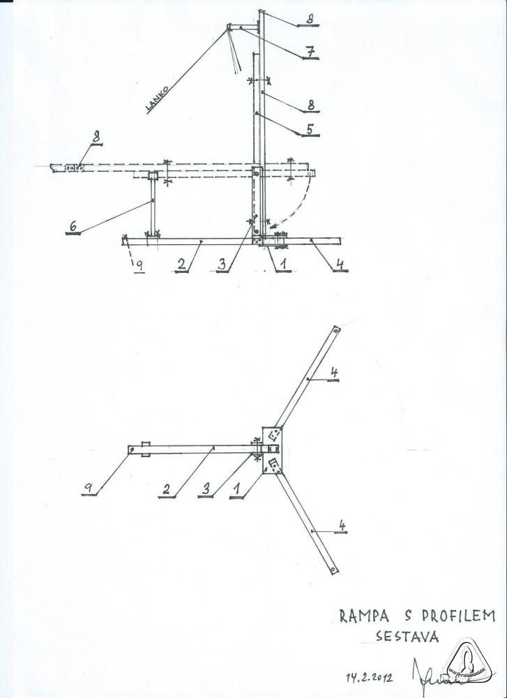 Nebylo nutné nic vymýšlet, jen jsem si to prohlédl a podle vlastního uvážení vše nakreslil do náčrtků, aby se dala rampa vyrobit. Jsem v důchodu a nemám už takové možnosti jako dříve, tak jsem výrobu zadal mladšímu kamarádovi z klubu – zámečníkovi, který mi ji vyrobil a druhý pozinkoval. Konečnou přípravu – do pasování dílů se šrouby, smontování a přípravu lan na vyztužení, jsem si už samozřejmě dělal sám.