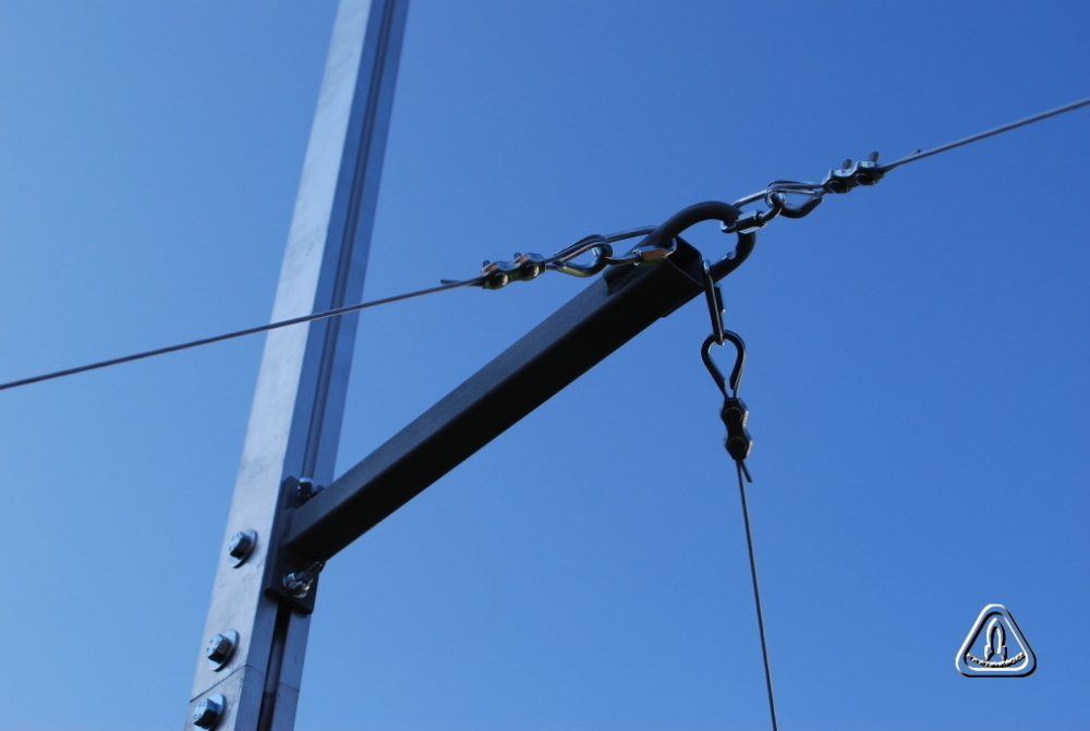 Vzpěra – je přišroubovanárampě ve výši asi 2,5 m od země na opačné straně než je model. Vzdálenost 300 mm může být zkrácena, záleží na velikosti stabilizátorů modelu, aby lanka při napnutí byla po 120°a nevadila při startu.