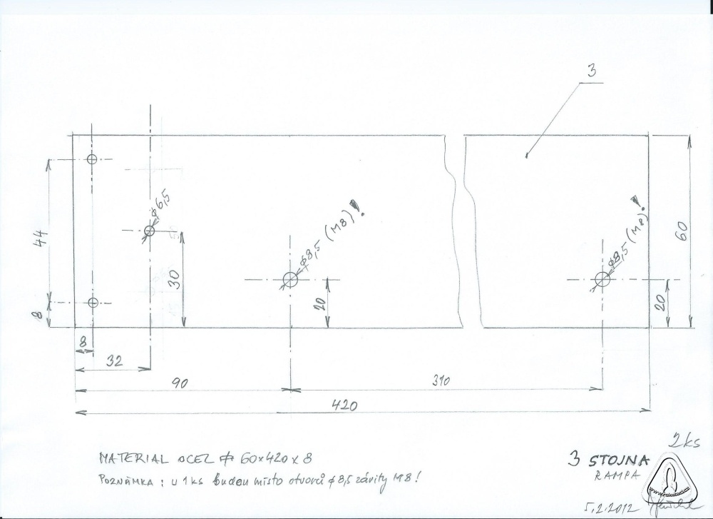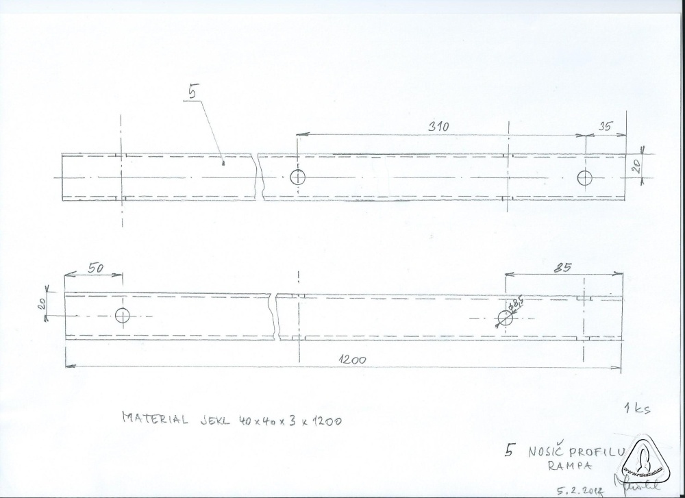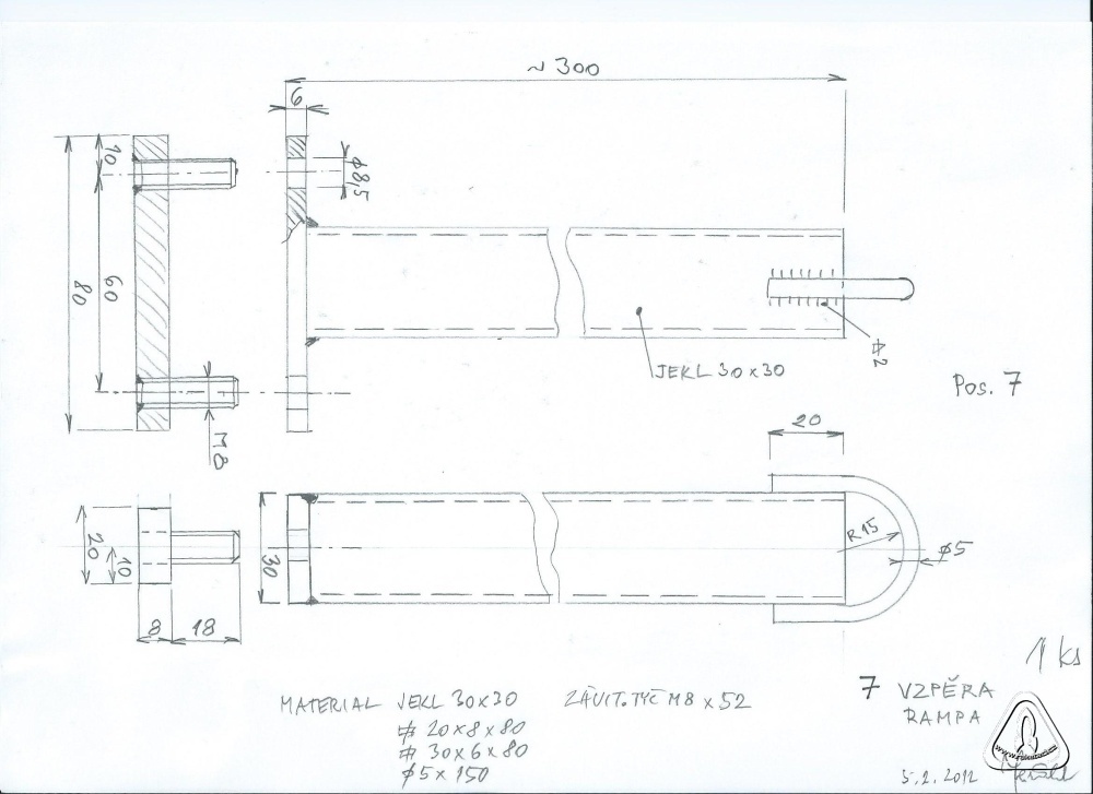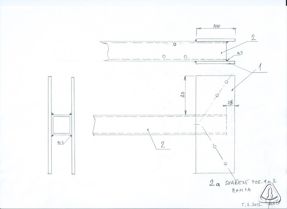 Pokud bude rampu vyrábět zámečník, bude mu z těchto náčrtků a fotografií vše jasné, ale na některé důležité práce při výrobě upozorním. Množství a druh materiálu je patrný z náčrtků.