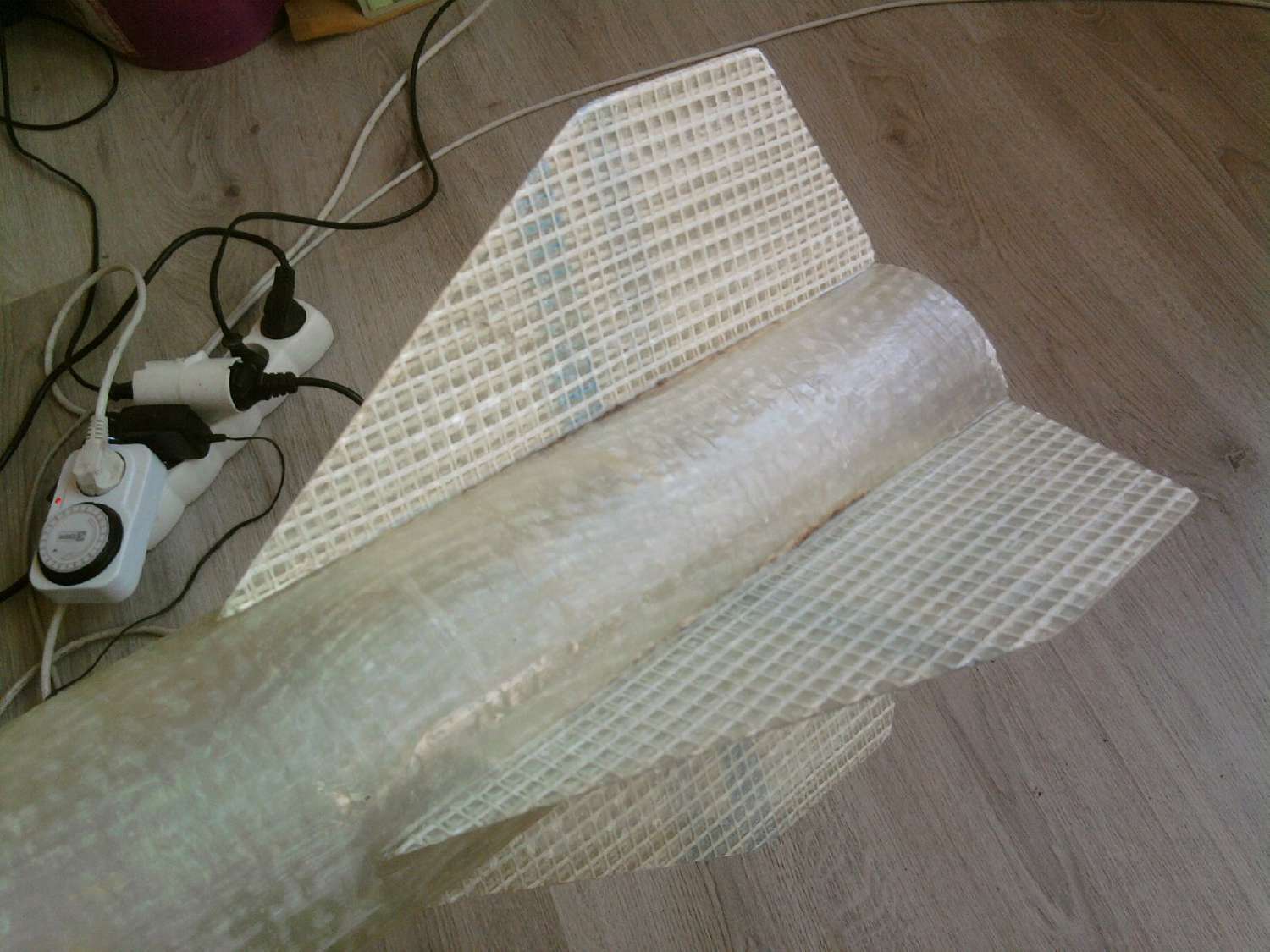 Chtěl bych se zeptat, jaký máte názor na přidání zednické perlinky mezi vrstvy klasické tkaniny (sendvič)? Nikde jsem to teda neviděl ale nedalo mi to nezkusit a výsledek nevypadá zase tak zle. Zkoušel jsem to zatím na stabilizátory kvůli snadnější práci na rovné ploše. Jde o to, že perlinka má cca o polovinu menší metrážní hmotnost, ale při stlačení desky se tkanina jakoby vtlačí do ok perlinky, takže ubyde na síle desky a pevnost se mi zdá vyšší, zkusím někdy otestovat pevnostní rozdíly. Na foto je nedávno dokončené 62,5 mm lože. |