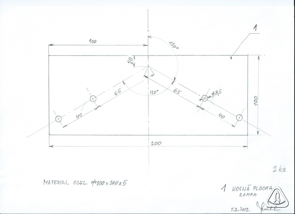 Pokud bude rampu vyrábět zámečník, bude mu z těchto náčrtků a fotografií vše jasné, ale na některé důležité práce při výrobě upozorním. Množství a druh materiálu je patrný z náčrtků.
