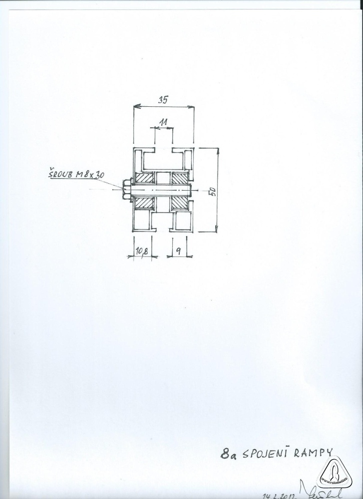 Spojka rampy – rozměry jsou pro použitý nosník a musí být přesné, aby při vsunutí do nosníku nebyla vůle a tím zajištěna rovinnost rampy.