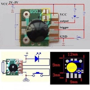 Elektronika je napájena z jedné 12V baterie GP 23A, která vypadá jako menší tužková AAA. Pro palník se musí použít externí baterie.
