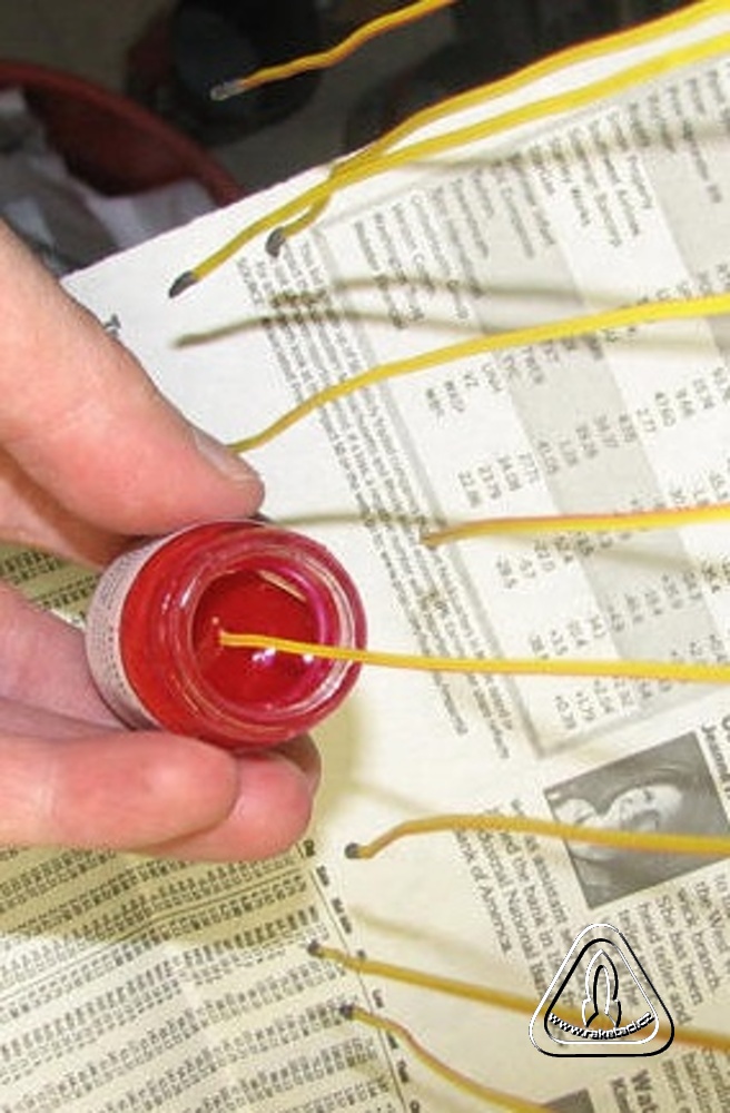 Zde je dobé nanést pyrogen - dobře zažehovatelná pyrotechnická směs s pojivem vytvářející zážehový plamínek.